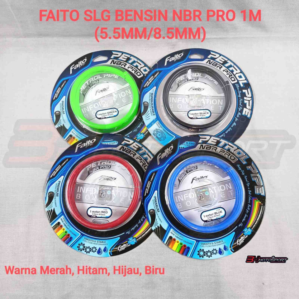 FAITO SELANG BENSIN NBR PRO 1M (5.5MM-8.5MM) MERAH-HITAM-HIJAU-BIRU