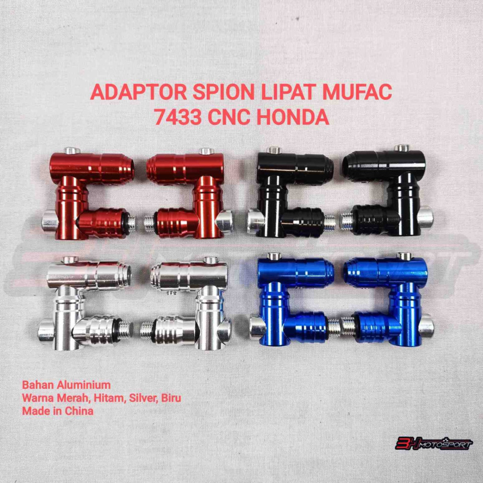 ADAPTOR SPION LIPAT MUFAC 7433 CNC HONDA SILVER-MERAH-HITAM-BIRU
